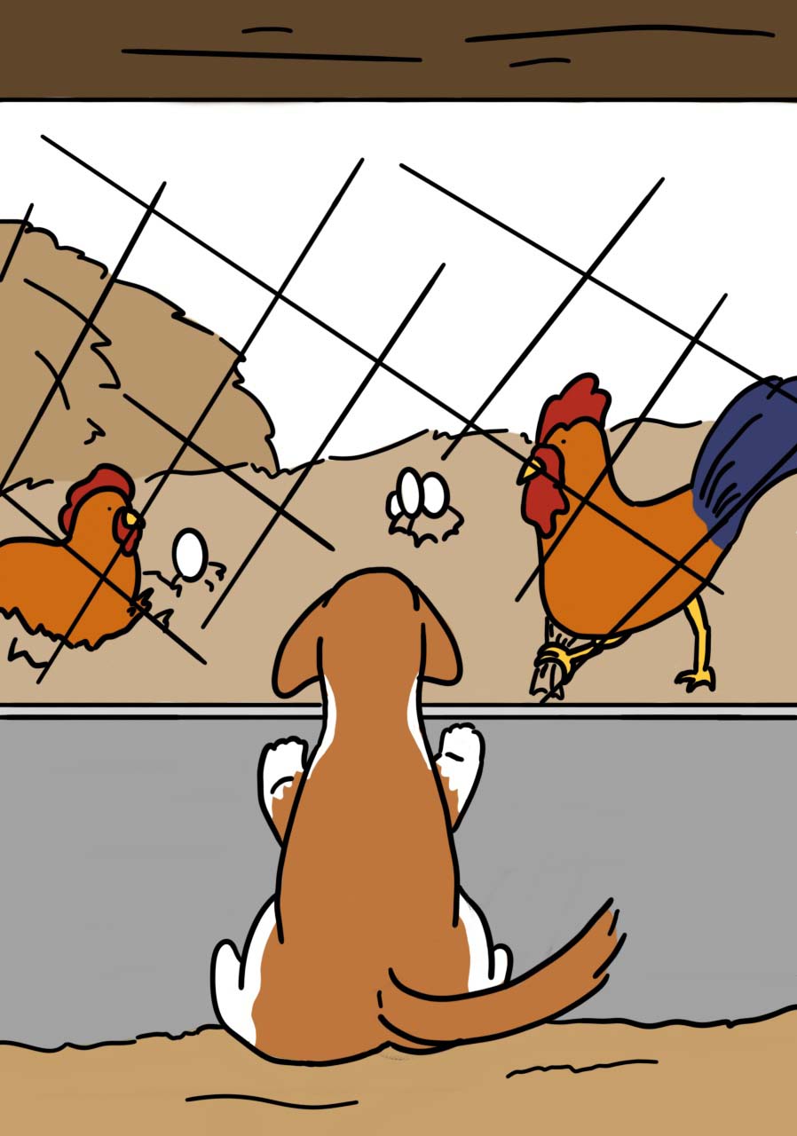 닭장 앞에서 반가운 듯 꼬리를 마구 흔들고 있었습니다.